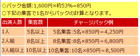 ※集客0人の場合、出演費としてお1人1000円の追加料金お願いします。
