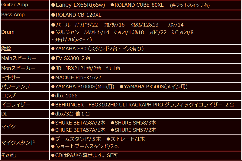 ステージが狭いのでバンドさんが中にいると転換がはかどらないのでよろしくお願いいたします。